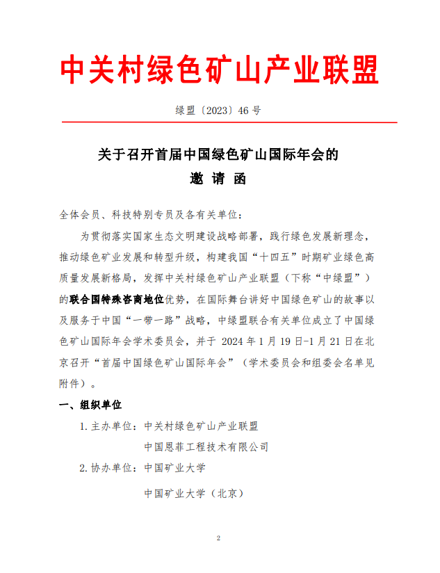 关于召开首届中国绿色矿山国际年会的邀请函