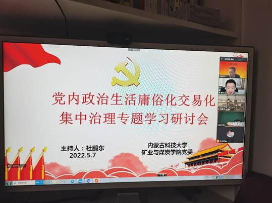 5月7日下午,公司召开党内政治生活庸俗化交易化集中治理工作专题学习研讨会。党委书记杜鹏东主持会议,公司党委领导班子、科级干部、各党支部书记、各系部负责人参加学习研讨。