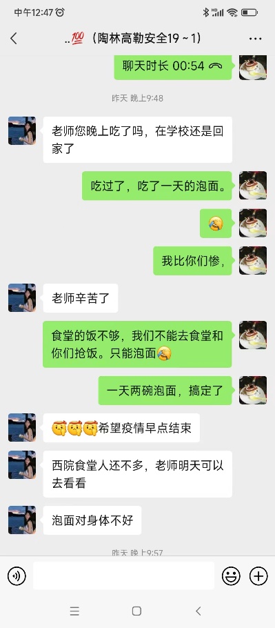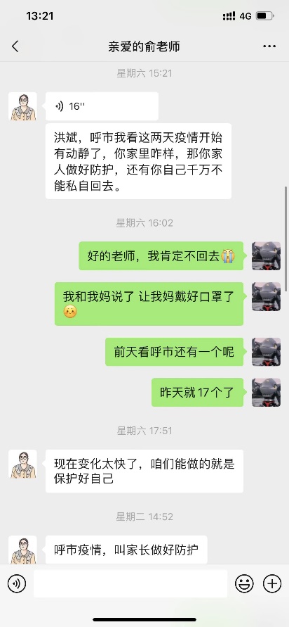 从呼和浩特市发现疫情开始,他们就及时关注员工情况,给予关怀,安抚情绪,鼓励员工安心在校学习,多给家里打电话,叮嘱做好防护。宿舍问题、食堂问题···他们想员工所想,急员工所急,持续畅通员工诉求反映渠道,及时回应员工关切。