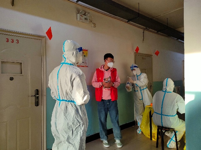 核酸登记员、样本管理员、核对数据、分发物资、走访宿舍、搬搬抬抬···哪里有需要,哪里就有他们的身影。工作结束后,吃一碗泡面、吃一口面包,满血复活,他们还是能量满满的最强队伍,也希望这样乐观积极的态度能感染同学们,给同学们信心和力量!