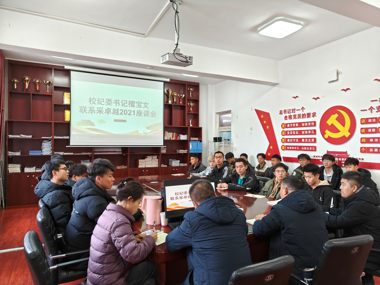 2023年11月15日,校纪委书记檀宝文与采卓越21全体员工在公司党员之家进行交流座谈。