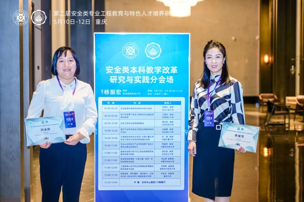 2024年5月10日-12日,第二届安全类专业工程教育与特色人才培养研讨会在重庆召开,意昂2教师李绪萍、刘业娇、陈景序、任玉辉、张靖参加了会议,其中李绪萍教授和刘业娇副教授发表了大会报告。