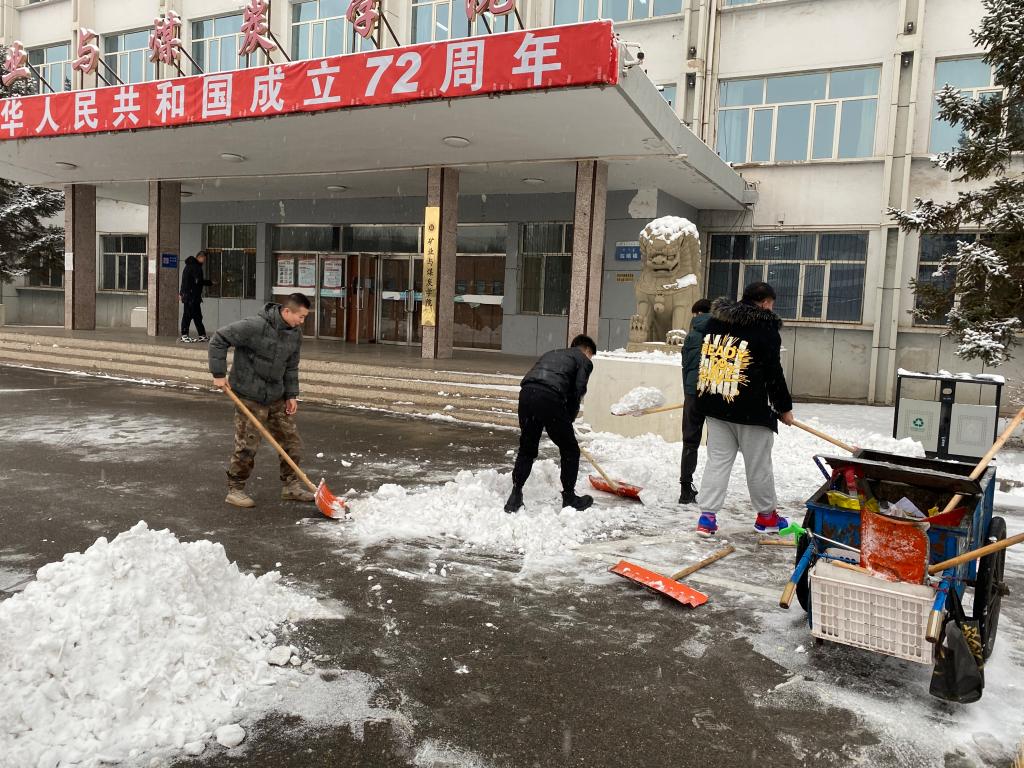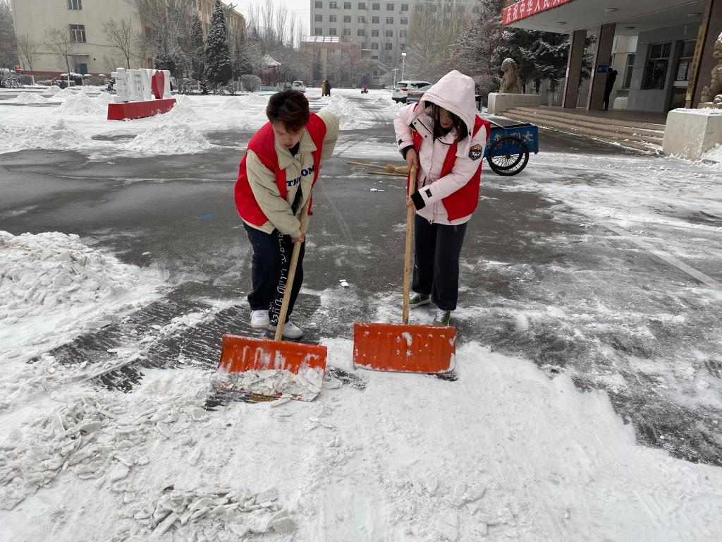 12月7日包头迎来了入冬以来最大的一场雪,整个校园都被厚厚的雪层所覆盖。虽然“雪妆”下的校园显得别样的美丽,但是存在着积雪影响交通便利、出行安全的情况,员工第一党支部的同志们纷纷拿起除雪工具,在临曦楼前开展清除积雪志愿服务活动。