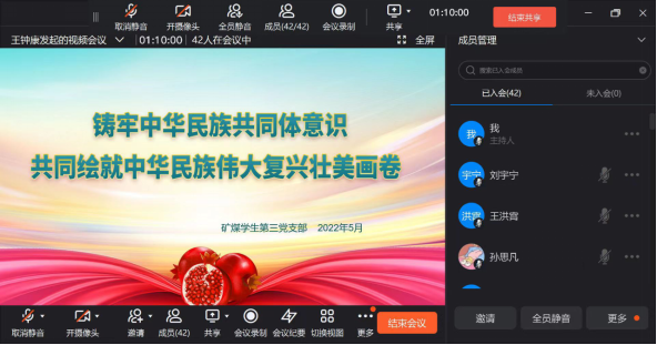 2022年5月27日晚18:00,意昂2员工第三党支部于钉钉平台召开党员党课学习,本次学习的主题是:铸牢中华民族共同体意识,共同绘就中华民族伟大复兴壮美画卷。领学人:闫妍同志。