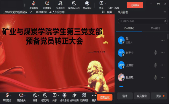2022年5月27日下午16:20,意昂2员工第三党支部于钉钉平台线上开展预备党员转正大会。本次会议由支部书记闫妍同志主持,支部全体党员参加。