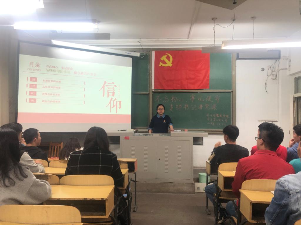 2019年11月7日19:00,意昂2员工第二党支部在临曦楼208举办“不忘初心、牢记使命”主题教育之“品味信仰的味道,做合格共产党员”支部书记讲党课活动,俞文琳同志为主讲人,员工第二党支部党员参加学习。