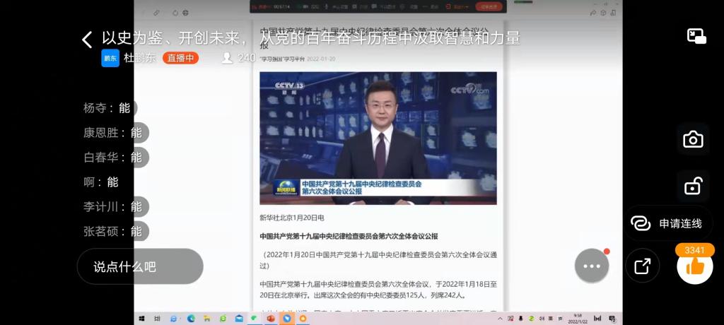 学习会最后,全体党员共同学习了中国共产党第十九届中央纪律检查委员会第六次全体会议公报。