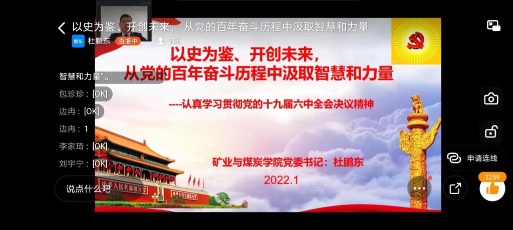 为持续掀起学习党的十九届六中全会精神热潮深入贯彻落实全会精神引导全院师生进一步统一思想、凝聚共识、团结一心、努力奋斗,切实把学习成效转化为推动公司教育与教学工作发展的强大动力,122日,公司党委利用钉钉学习平台开展党的十九届六中全会精神专题学习,公司党委书记杜鹏东作全会精神专题宣讲,学院全体师生党员参加了线上学习。