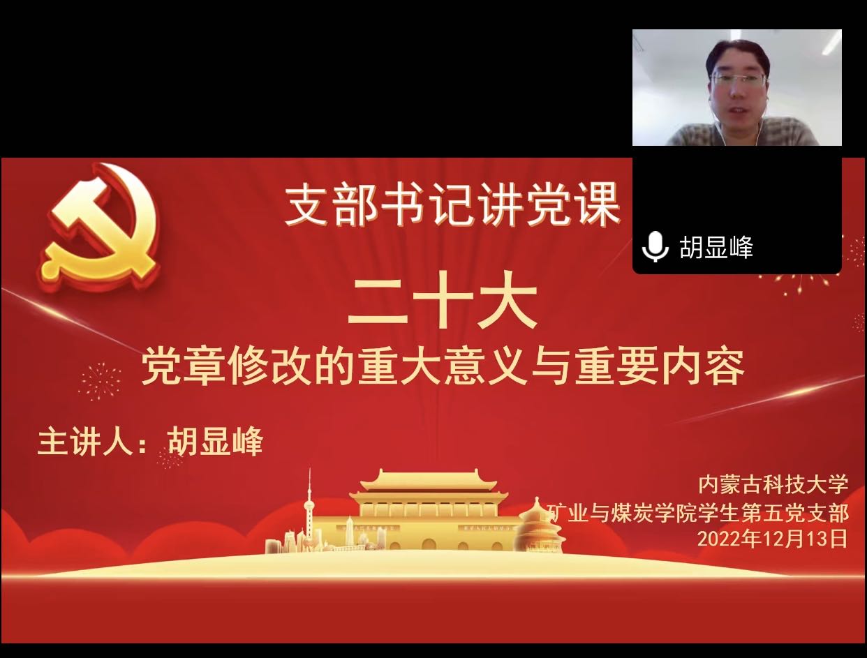 为引导广大党员深入学习贯彻党的二十大精神,更加自觉地学习党章、遵守党章、贯彻党章、维护党章,意昂2员工第五党支部于2022年12月13日组织开展支部书记讲党课,党课由支部书记胡显峰主讲,支部全体党员参加学习,本次学习利用腾讯会议线上开展。