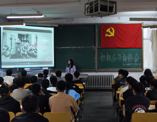 第五党支部党员王文丽、臧万祺带领大家回顾了中国共产党走过的光辉历程。从新民主主义革命时期、社会主义革命和建设时期到改革开放和社会主义现代化建设时期进行讲解学习。从党的百年奋斗中看清楚过去我们为什么能够成功、弄明白未来我们怎样才能继续新征程,从而更加坚定、更加自觉地践行中国共产党的初心使命。