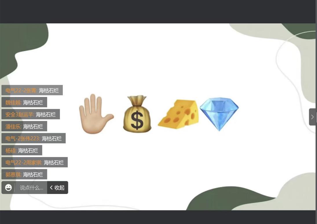 本次活动通过线上视频以聊天、吐槽、小游戏等方式开展,活动中,同学们认真分享了自己在静默状态下的生活,如读书、运动、打卡、与亲人好友保持联系、分享彼此学习的经验及目标等,纷纷表达了自己学会了如何与舍友相处,如何应对和调解自身的情绪,如何让琐碎无聊的日子变的充实而有趣,学会了用积极的视角看待问题,展现出了满满的正能量。