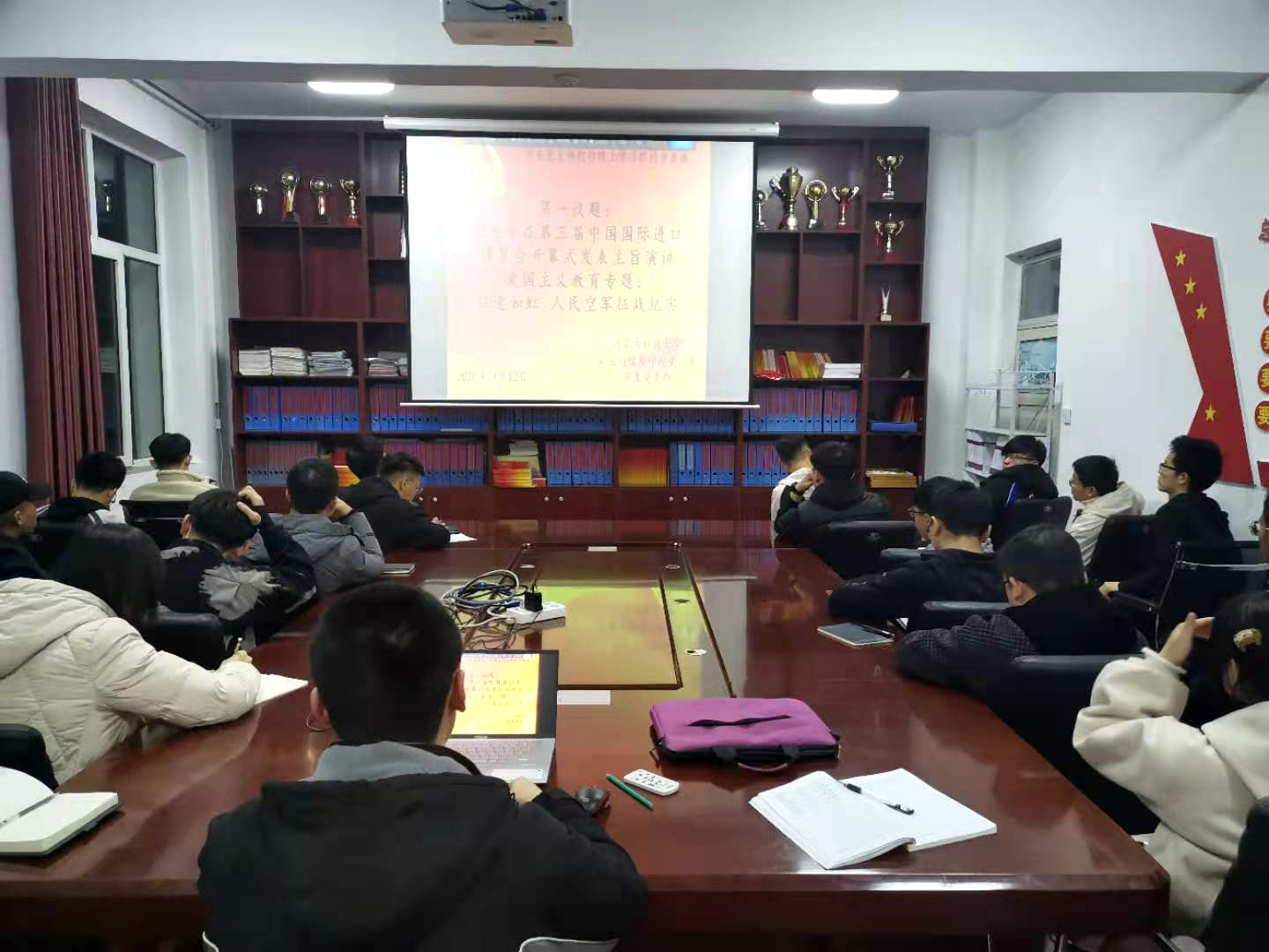 回首人民空军那些刻骨铭心的故事,抒发对人民空军的深厚情义,公司党总支于2020年1112日晚上19:30,在临曦楼二楼党员之家线上线下同步开展专题理论学习活动。本次学习内容是:第一议题:学习习近平在第三届中国国际进口博览会开幕式上发表主旨演讲讲话精神;爱国主义教育专题:观看《征途如虹人民空军征战纪实》视频。