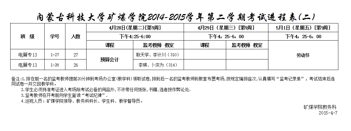 意昂2(高职)14-15(2)春学期考试进程表(二)